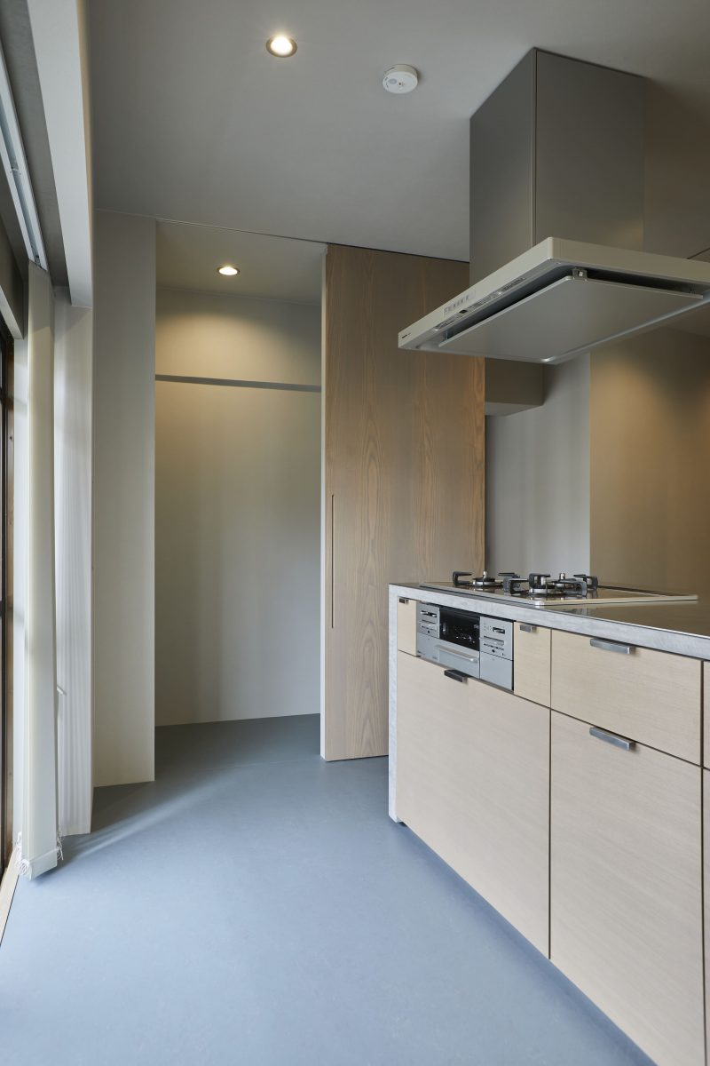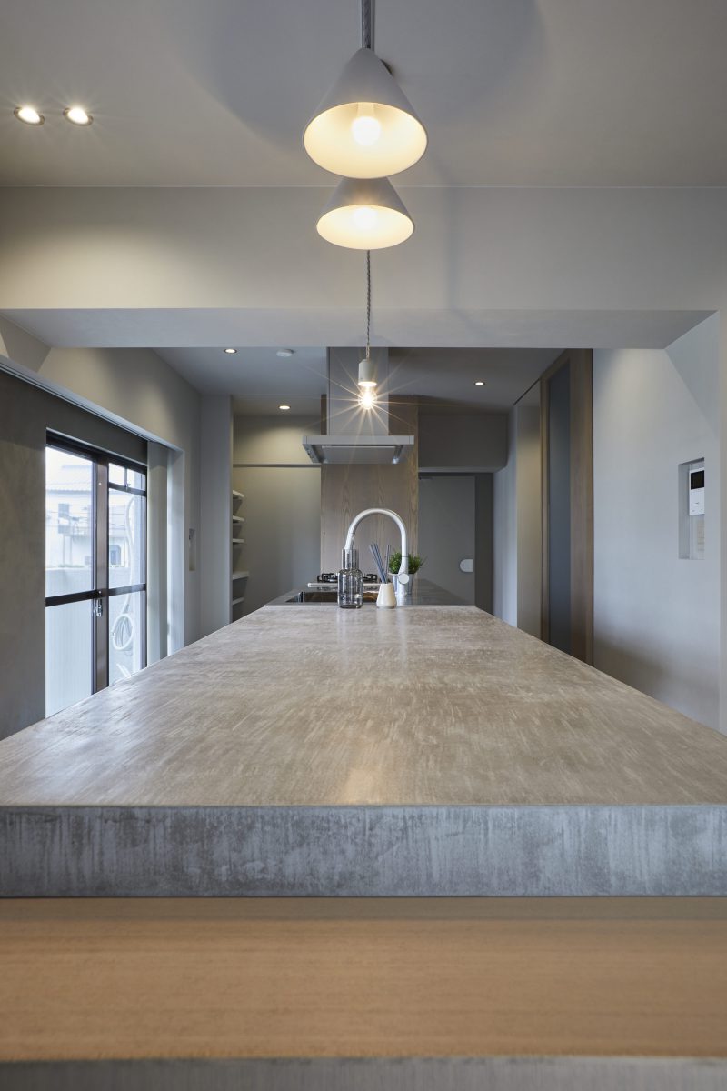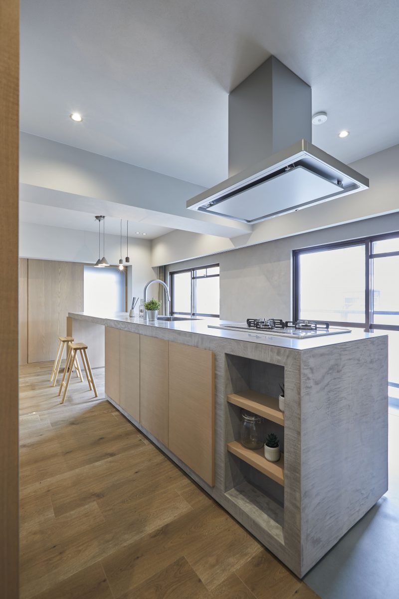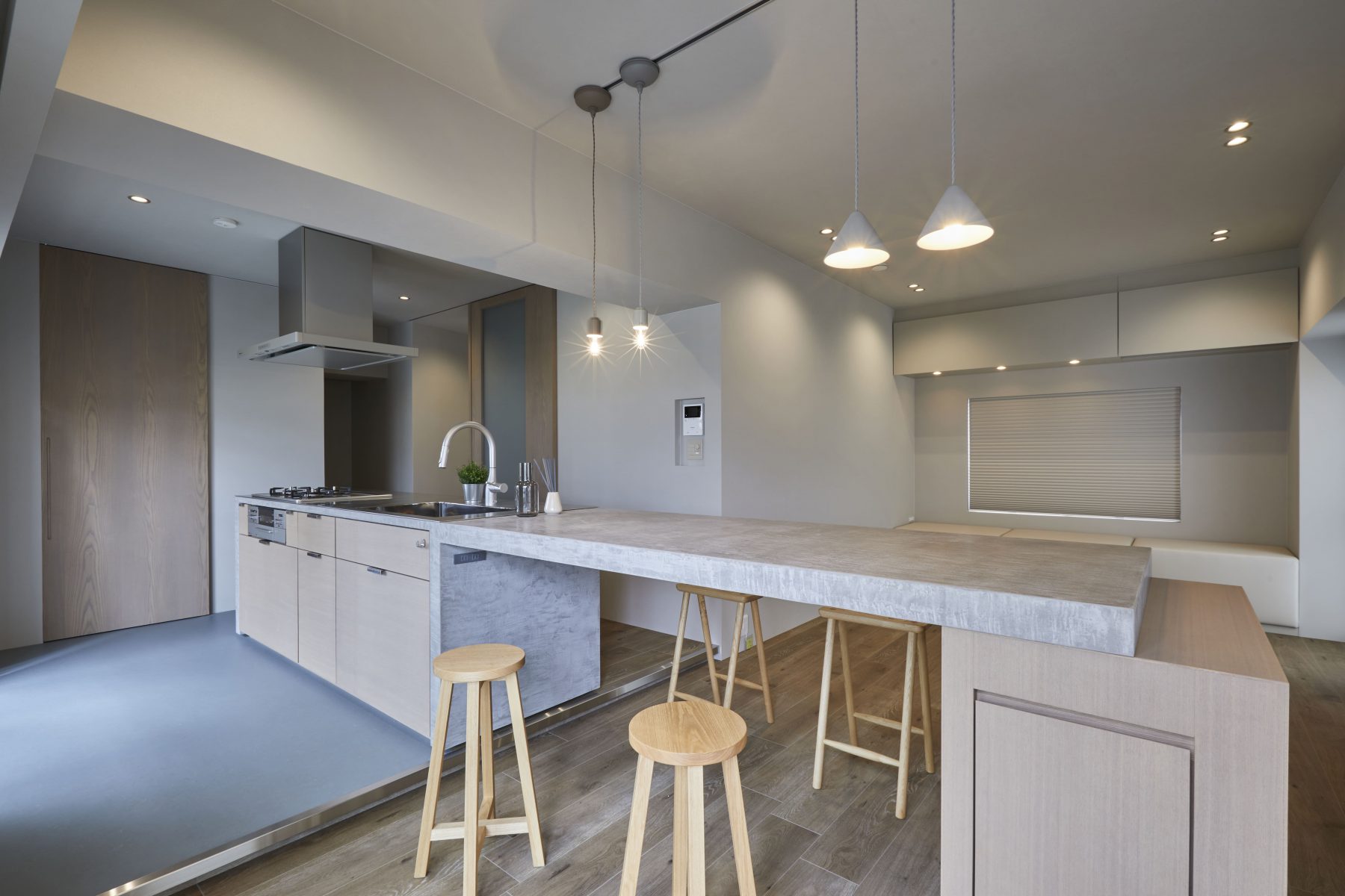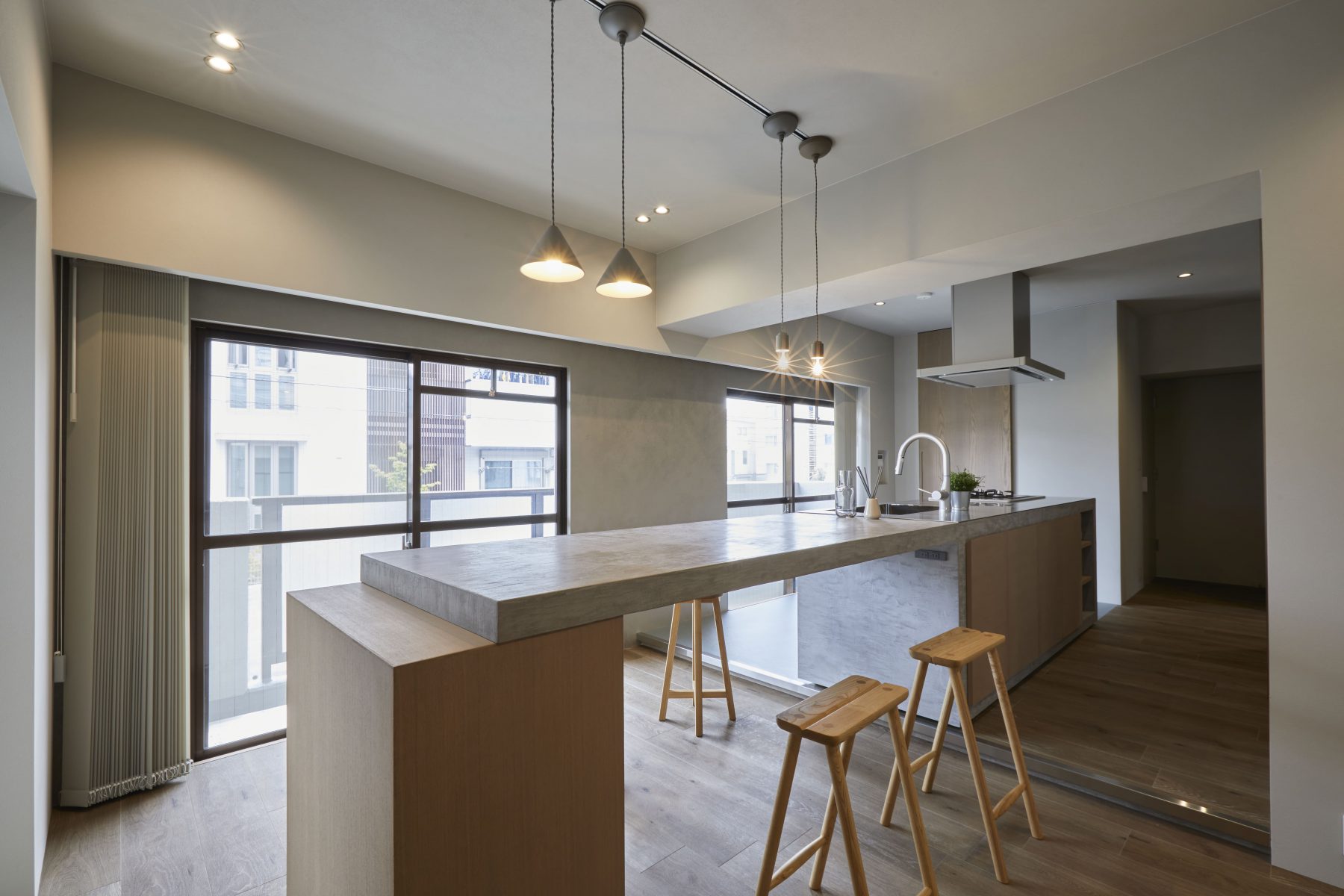 005貴船は、マンションに住むことに抵抗がある人におすすめな物件です。上にも下にも部屋がなく、角部屋なので隣接する部屋は1部屋のみ。モールテックスのテーブルでゆったりと食事を済ませたら、造作ソファの上でごろごろ。広いベランダに出てお花に水をやった時、やっとここがマンションであることに気づきます。