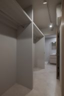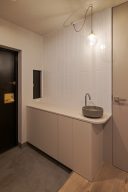 エントランスホールはアール壁だけでなく、小さな手洗いボウルや框(かまち)にも曲線を配し、やわらかな雰囲気に仕上げています。
